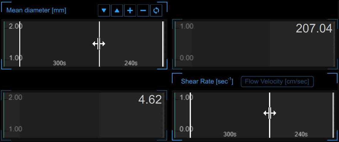 - Baseline, where the software computes the baseline diameter and the baseline shear-rate.