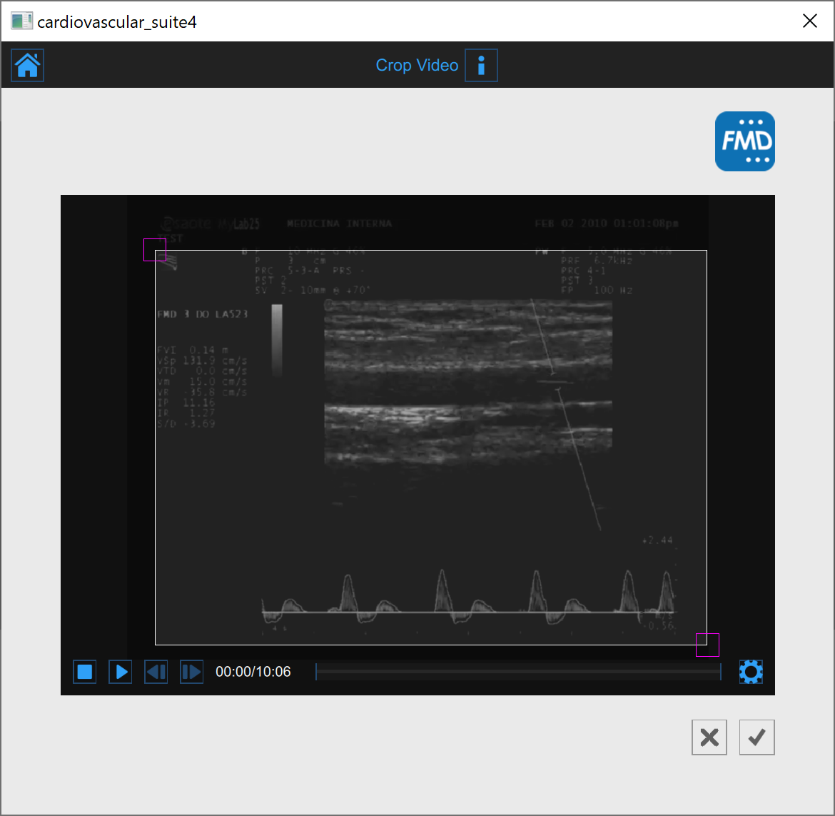 In addition, if you have chosen a video file as source, in the review window, it is possible to convert the video file to be optimized for the analysis with Carotid Studio. This operation may take few minutes.