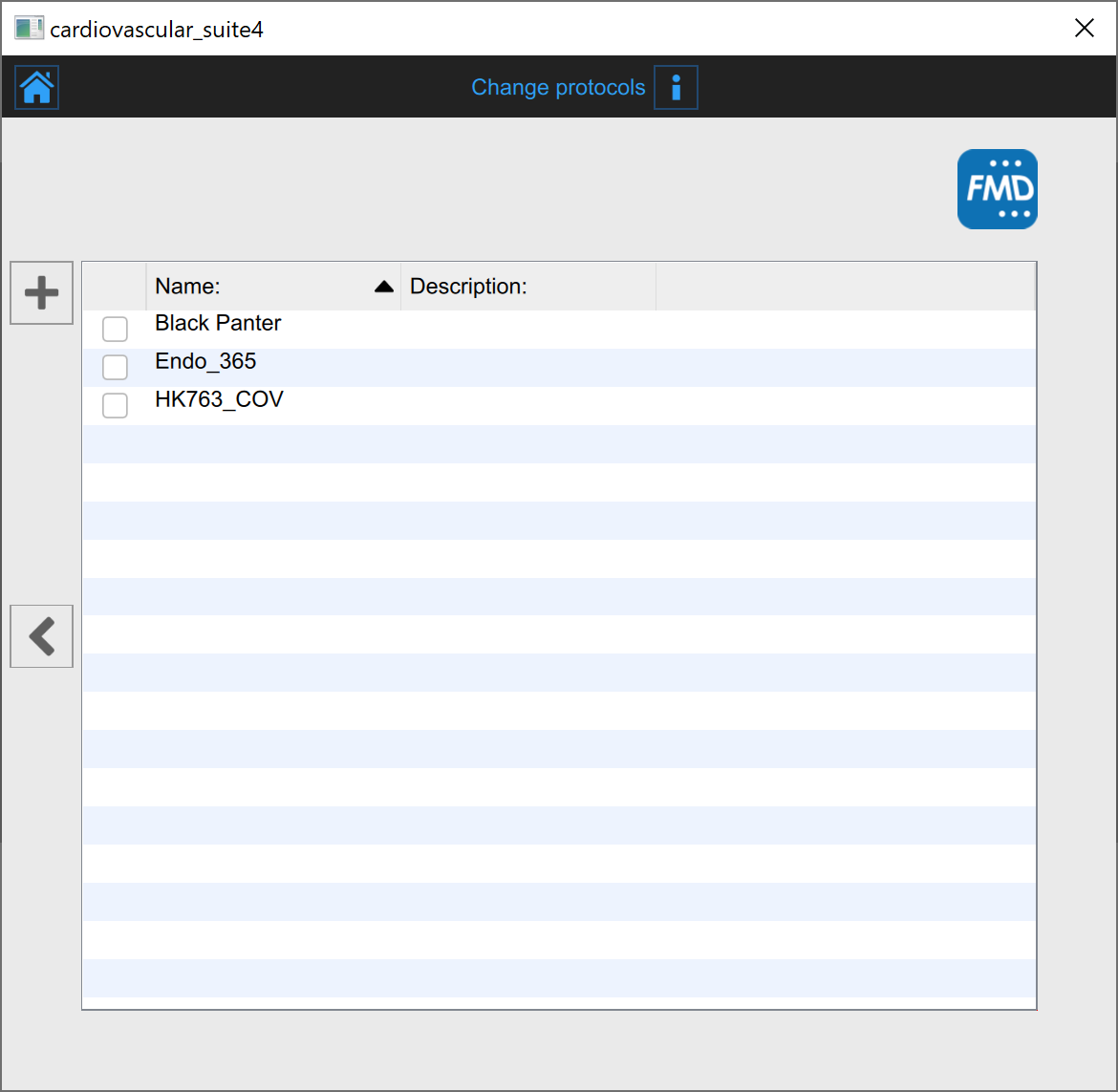 Here, the user has the possibility to associate the study to one ore more existing protocols, by clicking on the protocols icon .