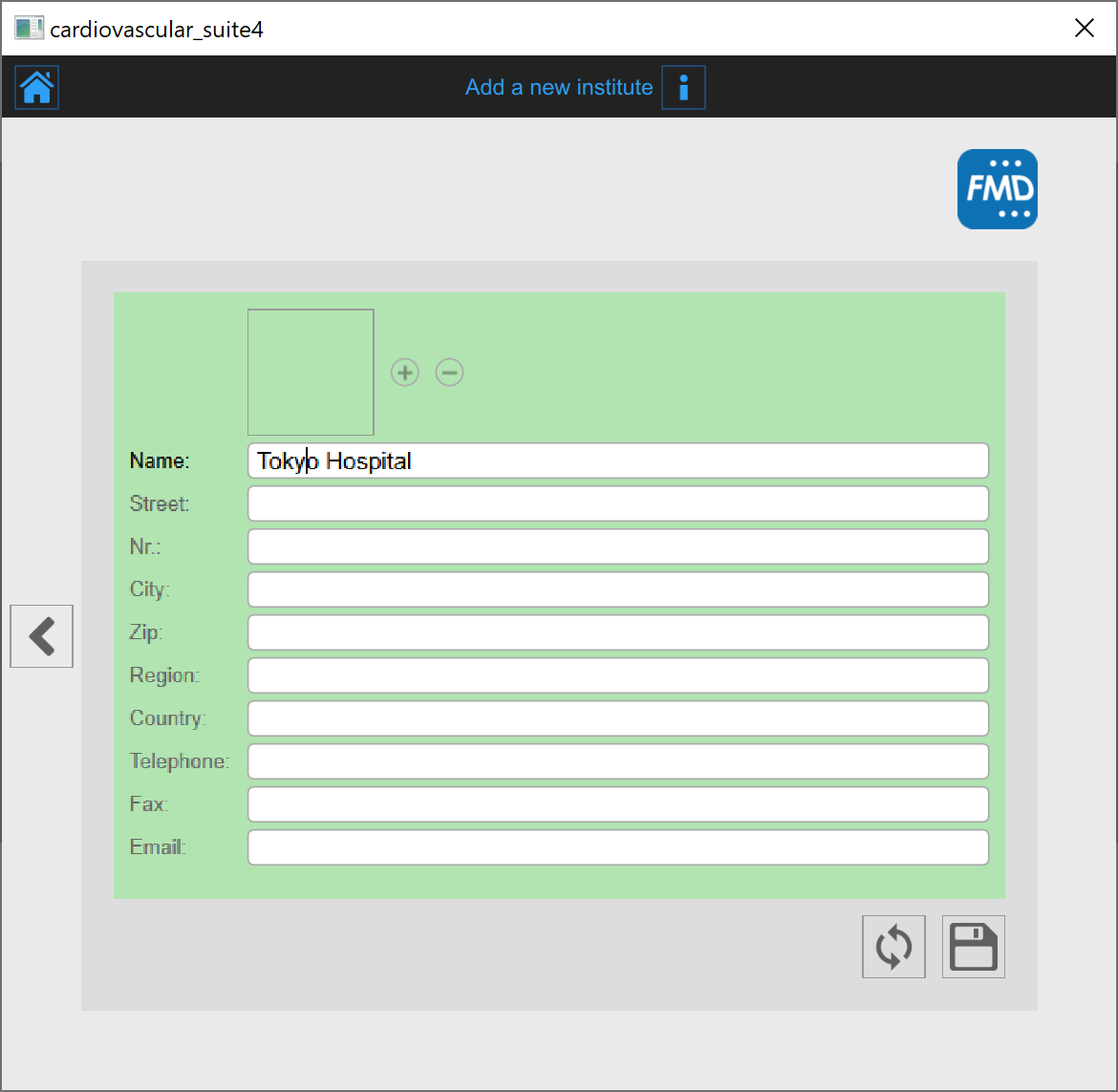 If you want to create a new institute, click on the Add New Institute button. In the Add new institute frame, enter the institute data. The only mandatory field is the Name. Click on the Save button to save the institute data.