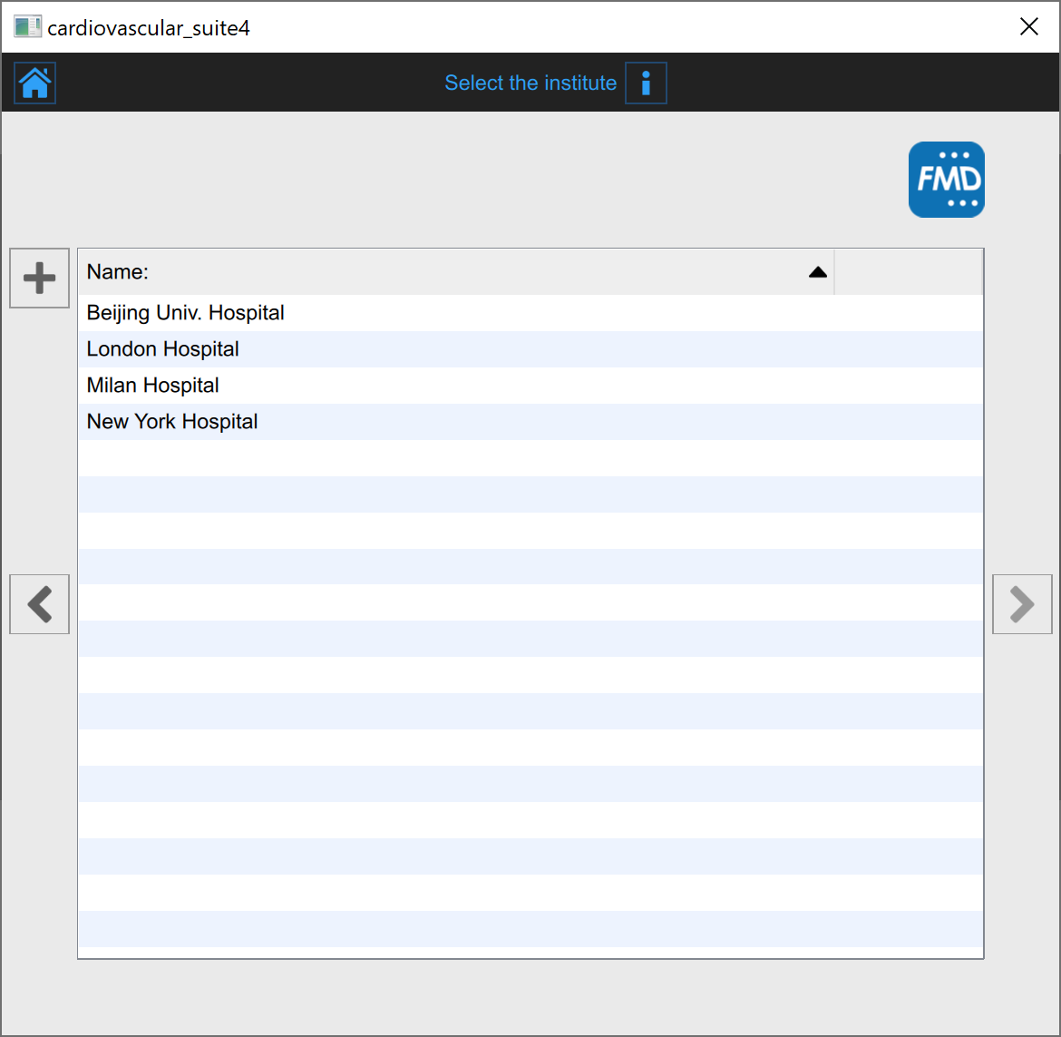 In this tab, you can select the institute among the ones already present in the Archive. Select the institute and click on the Next button (you can simply double-click on the institute to proceed).