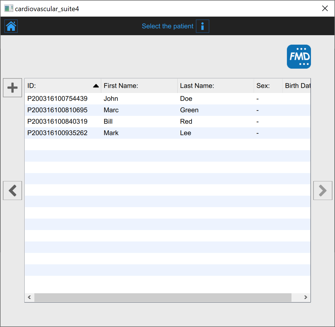 In this tab, you can select the patient among the ones already present in the Archive. Select the patient and click on the Next button (you can simply double-click on the patient to proceed).