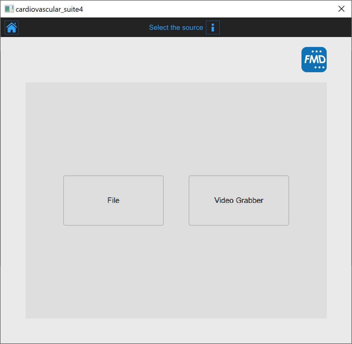 In this tab, you can select the study video source. FMD Studio processes video sources and can work in offline modality by processing a Video File or a DICOM File or in real time by processing images directly coming from the ultrasound equipment thanks to a video converter.