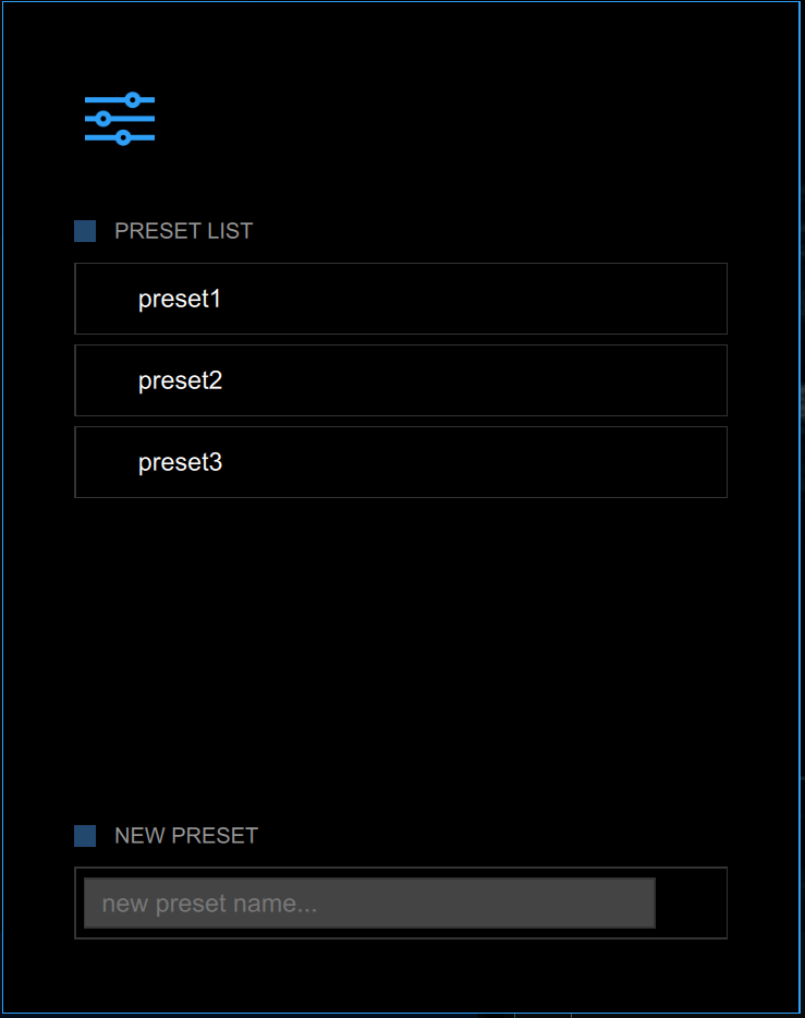 The preset management button opens the preset management panel that allows to manage presets. In particular, it allows to remember the settings of: